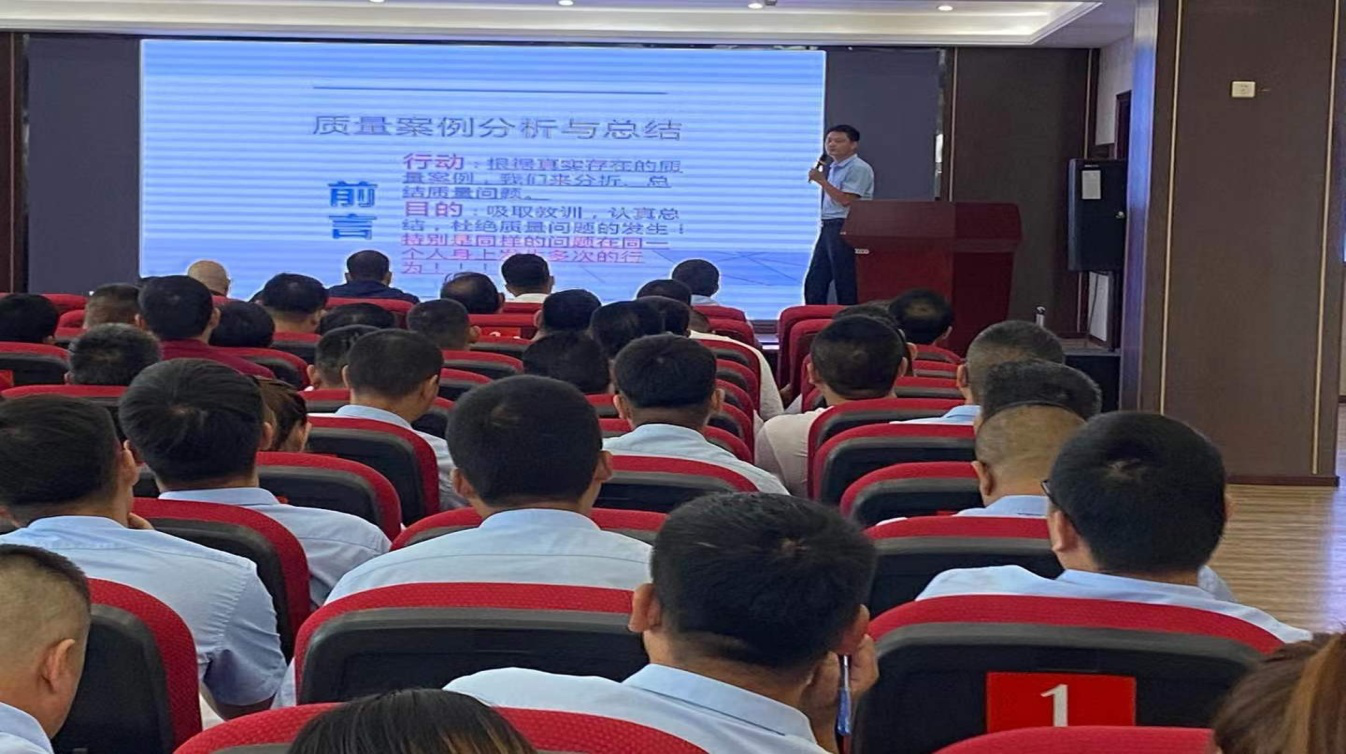 华庭项目负责人杨甲贺为大家讲解了上半年公司各项目质量问题分析,分析了深基坑工程、基础与结构、建筑做法、防水、安装等施工过程中重点质量管控。本着切实提高本公司各项目施工质量管控要求,增强工程质量管控意识的思想,全面提升公司安全质量管理水平,顺利推进项目进展,做到安全优质快速。