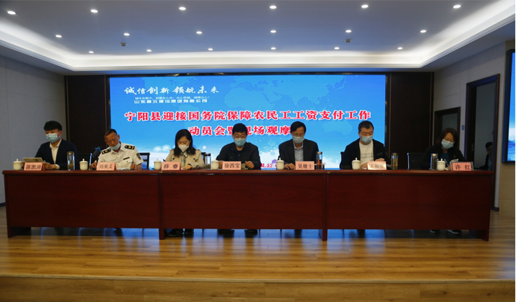 2020年5月5日上午9点,泰安市督查小组、宁阳县住建局、人社局在中海金融大厦召开《国务院保障农民工工资支付工作动员暨现场观摩会》。